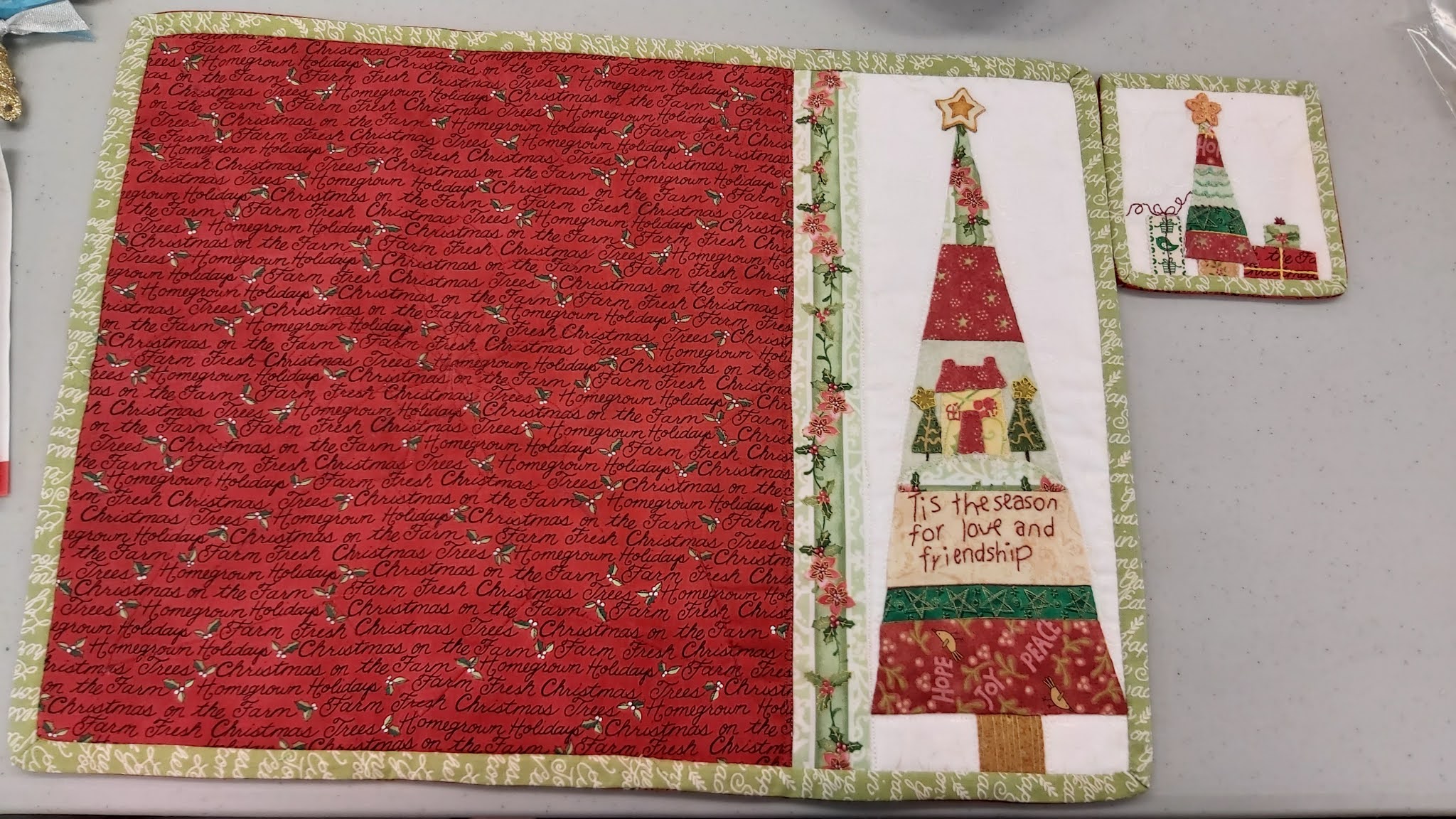 We decided to make reversible placemats for gifts to each other - one side Christmas and the other side for use at SS.